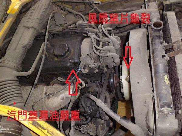 風扇葉片龜裂及引擎漏油嚴重